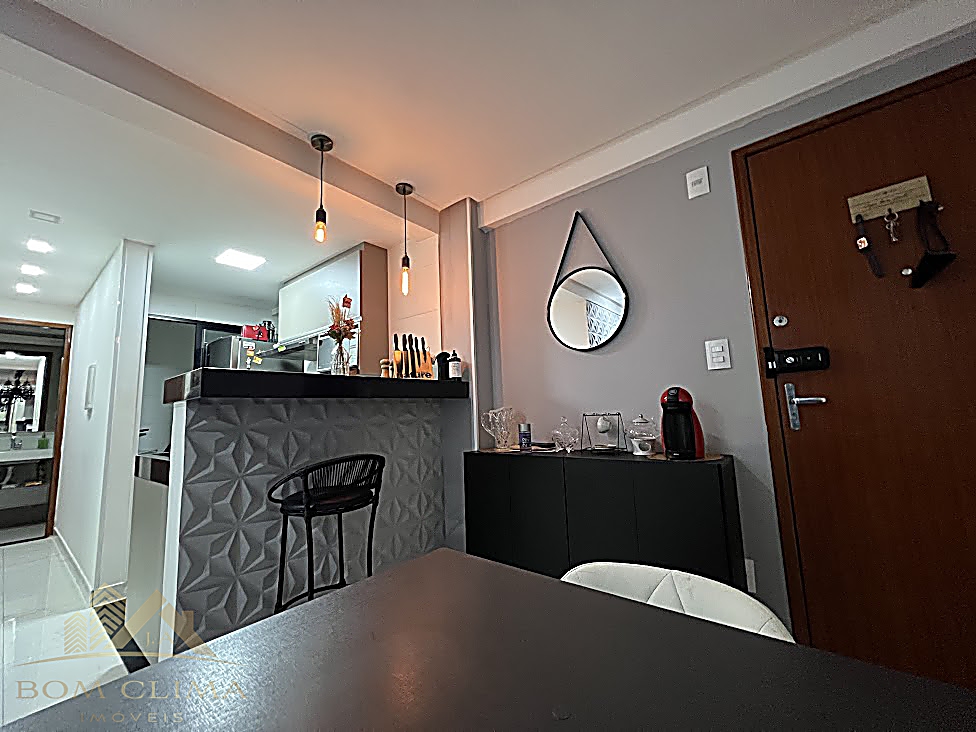 O apartamento foi todo reformado com fino acaabmento e possui 2 quartos com armários embutidos, sala de 2 ambientes com painel de tv,e gesso 3d, mesa embutida, espelhos, home theater no teto, rebaixo de gesso ,varanda contínua com cortina de vidro, banheiro social com granito nanoglasse nicho no box, cozinha americana com armários bancada, em granito, com cooktop e forno de embutir, coifa área de serviço, 1 vaga de garagem.