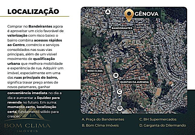 No bairro Bandeirantes, uma das regiões mais valorizadas e desejadas de Juiz de Fora, o Residencial Gênova oferece tranquilidade, praticidade e fácil acesso a tudo o que você precisa no dia a dia.
